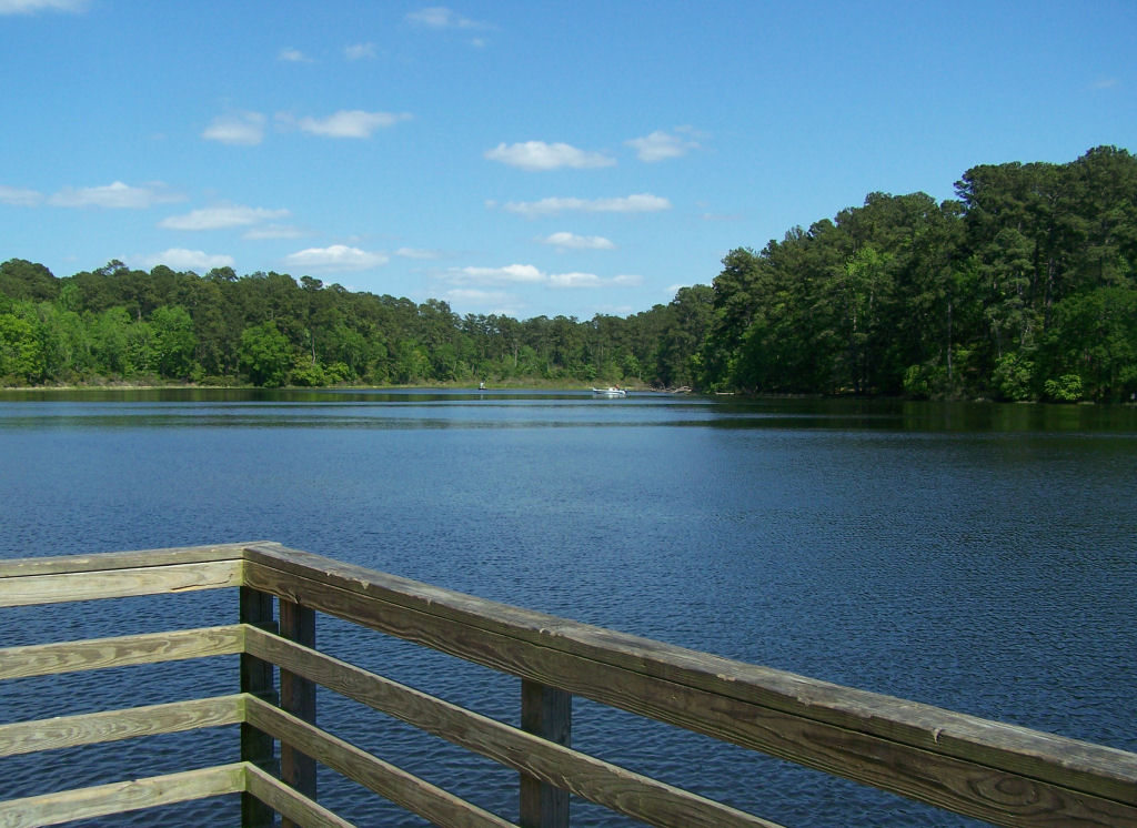 A site was selected, plans were drawn up by local engineers and planners, and submitted to the federal park board and the state board for approval. Under the guidance of such experts as Milton J. McColm, the present site was selected because its topography offered a site for a dam that would create a lake for boating, fishing, and swimming. On the site, Big Chiquapin and Little Chiquapin Creeks merged and flowed on to join Prairie Branch. At a spot below the junction, a dam was constructed.