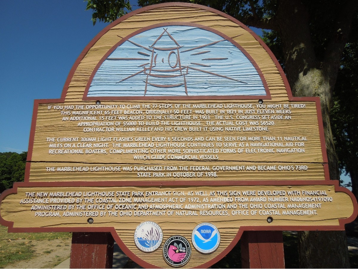 The Ohio Department of Natural Resources has maintained the property surrounding the lighthouse since 1972 and proudly accepted ownership of the Marblehead Lighthouse tower in May 1998. The U.S. Coast Guard continues to operate and maintain the lighthouse beacon. Today?s 300 mm lens projects a green signal that flashes every six seconds and is visible for eleven nautical miles. The distinctive green distinguishes the lighthouse signal from white lights coming from air beacons.
